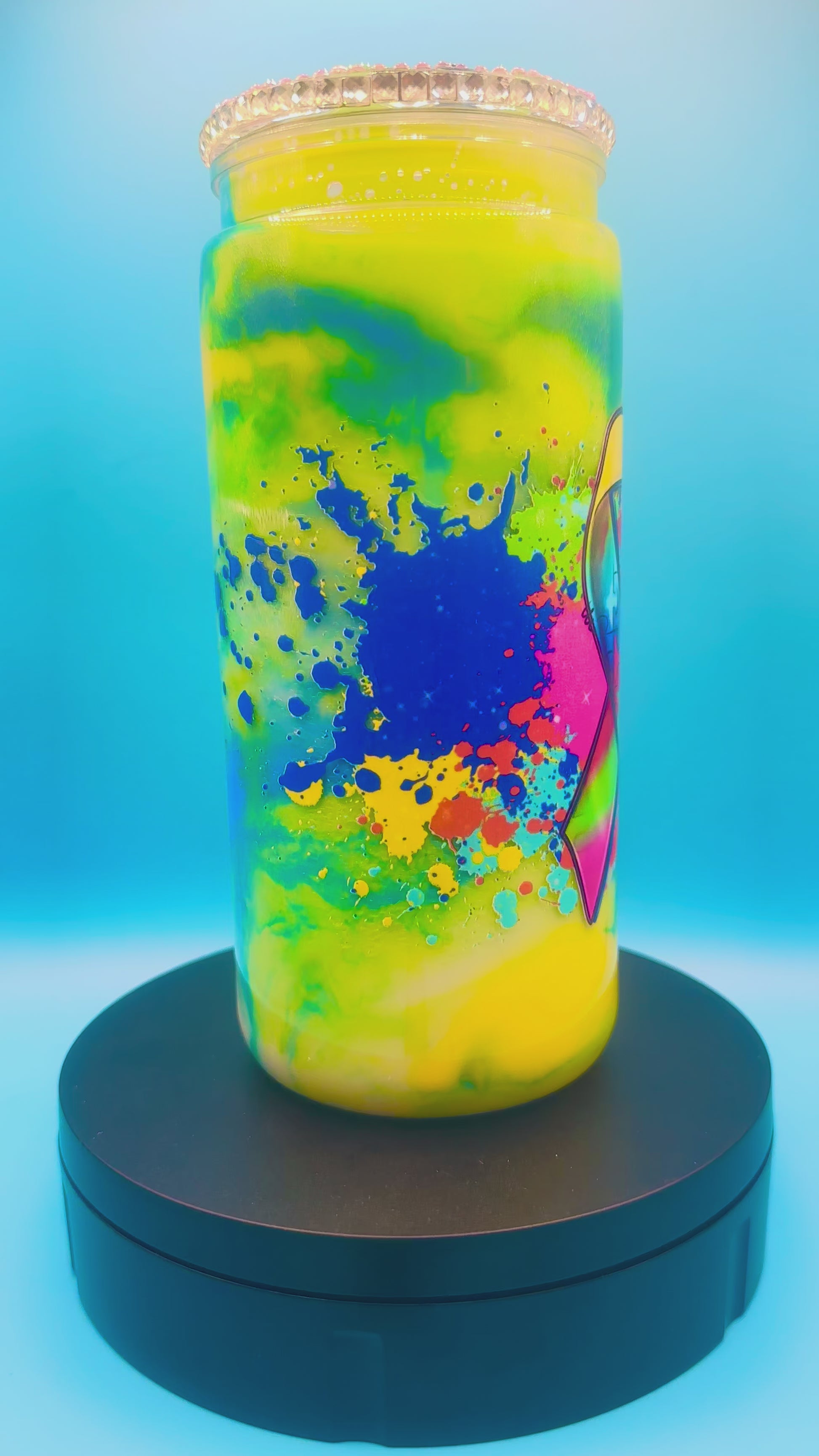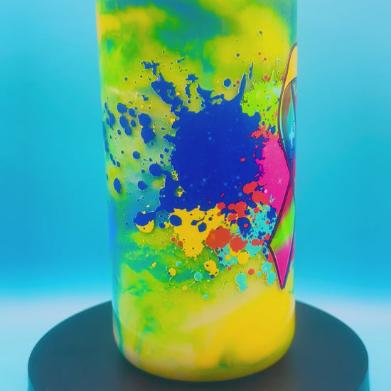 16oz. Acrylic - Blue, Yellow, Green. Comes with straw.