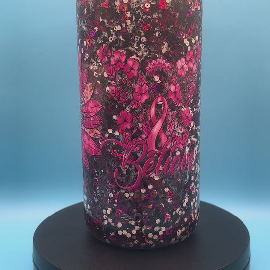 16oz. Acrylic - Glitter flow is partially suspended. Comes with straw.