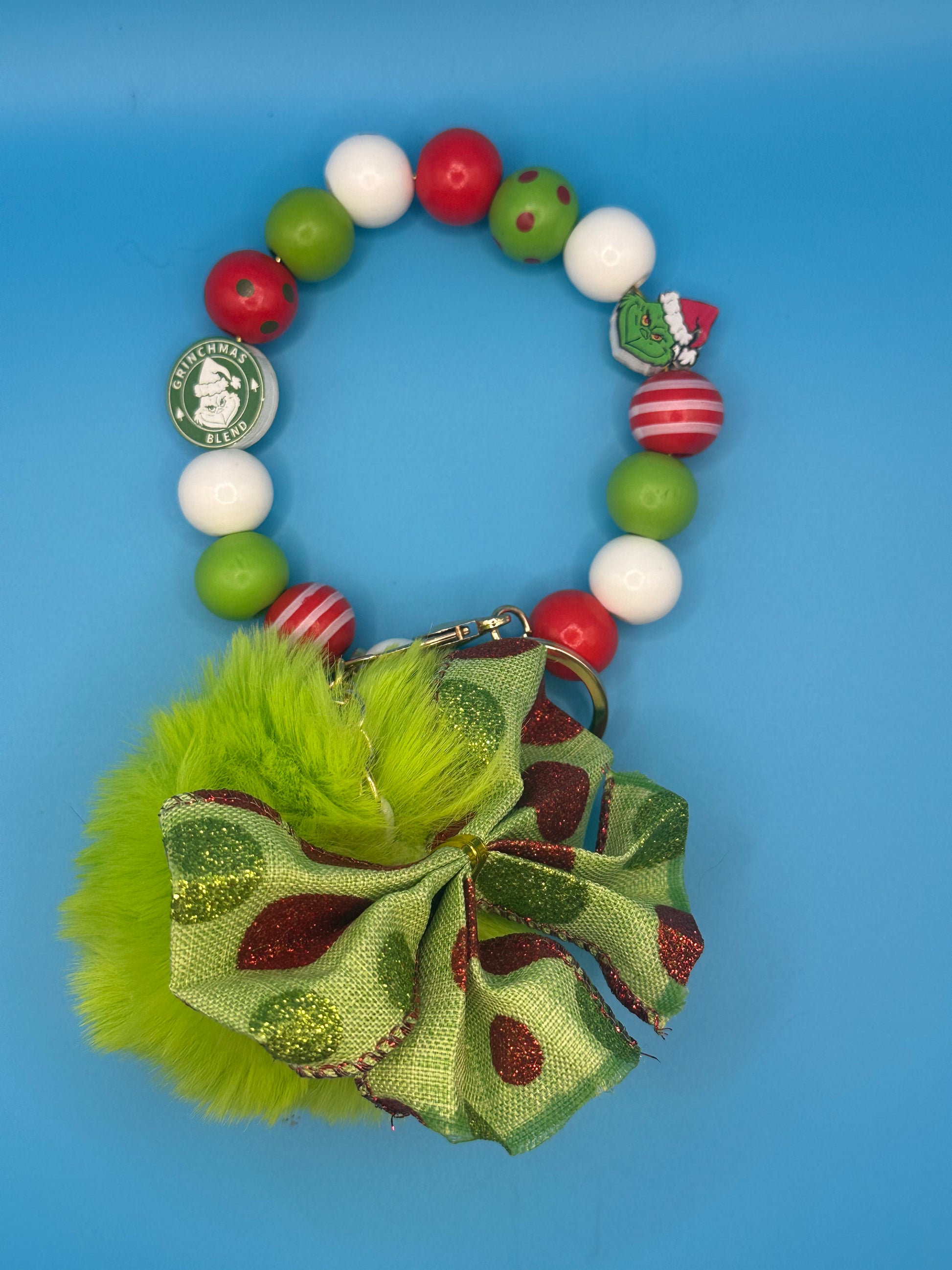 SALE! Keychain - Grinch Beaded Key/Bag Charm