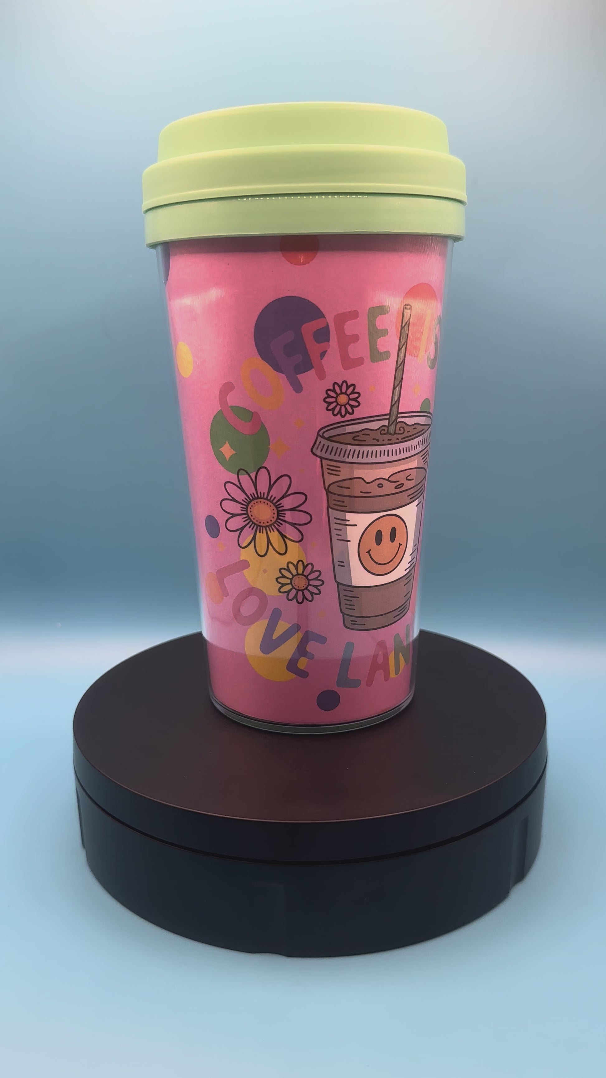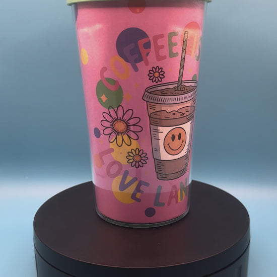 Travel Mug 17 oz - Coffee is Love (pink background) - Teal Green