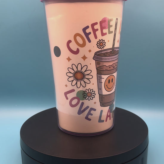 Travel Mug 17 oz - Coffee is Love (white background) - Lilac Pink